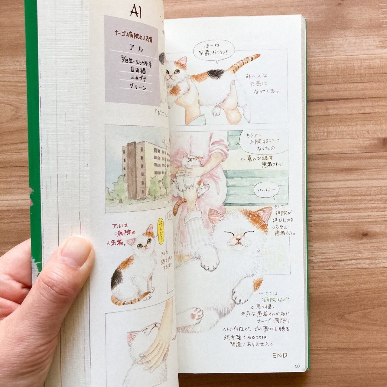 架空の猫たちの楽園ナーゴに旅した気分になるツアー行程表と地図が付いて著者の遊び心満載。子猫たちの優しいイラスト、イラストに添えられた手書き風文字にほのぼのとします。