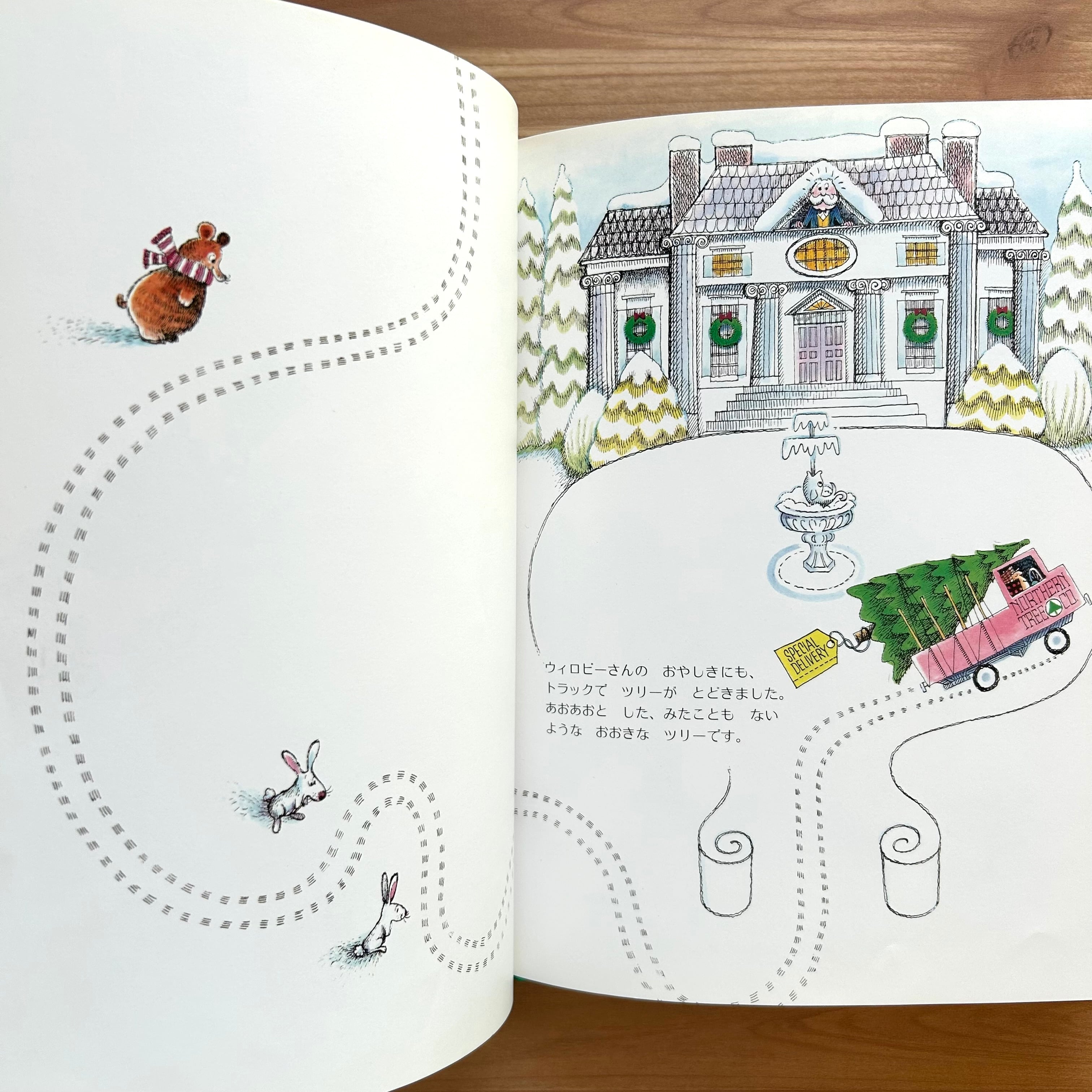 ウィロビーさんのおやしきにとどいた大きな大きなツリー。大きすぎて、さきっぽを切りました。そのさきっぽがまた切られ、どんどん小さくなって……森の動物たちも大よろこび!