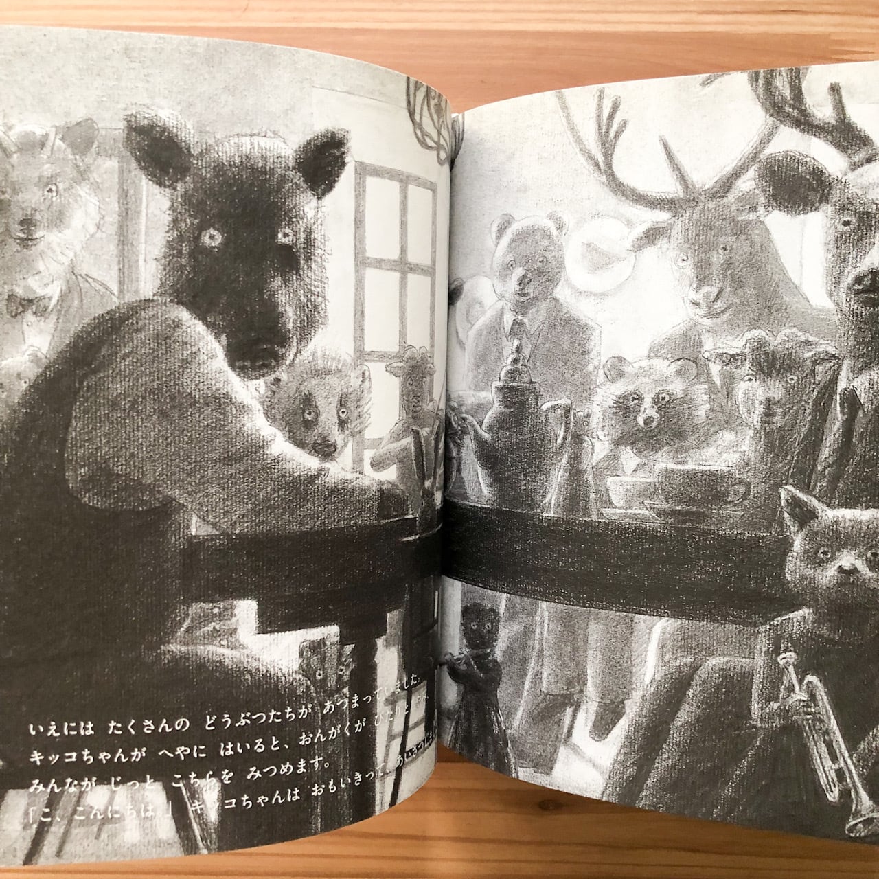 おばあちゃんの家にケーキを届けに行く途中で、キッコちゃんがまよいこんだ不思議な館。そこでは、おめかしした動物たちがすてきなお茶会を開いていて…。(「TRC MARC」の商品解説より)